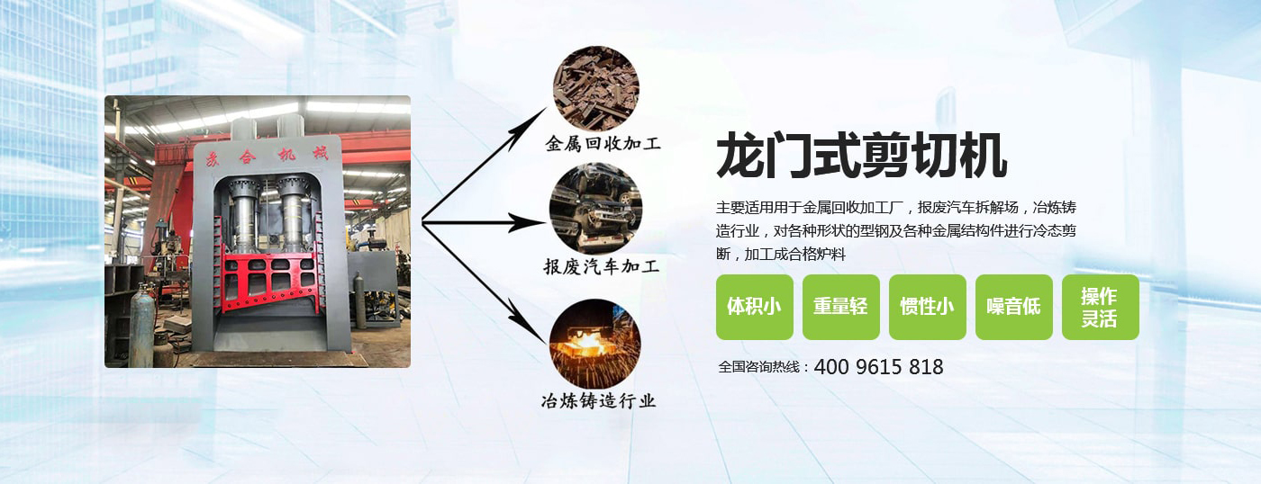 虎頭剪具有體積小、重量輕、慣性小、噪音低、動作平穩(wěn)、操作方便、靈活、剪切斷面大、剪刀口調(diào)整方便等優(yōu)點,操作使用安全。常用于廢舊回收企業(yè)、廢鋼廠、冶煉鑄造企業(yè)對各種形狀的型鋼及各種結(jié)構(gòu)的金屬進行冷態(tài)剪切。剪切機的用途就是用來剪切定尺、切頭、切尾、切邊、切試樣及切除軋件的局部缺陷等。 滑縣蘇合機械制造有限公司性能穩(wěn)定,操作簡單。歡迎來電咨詢 <了解更多>